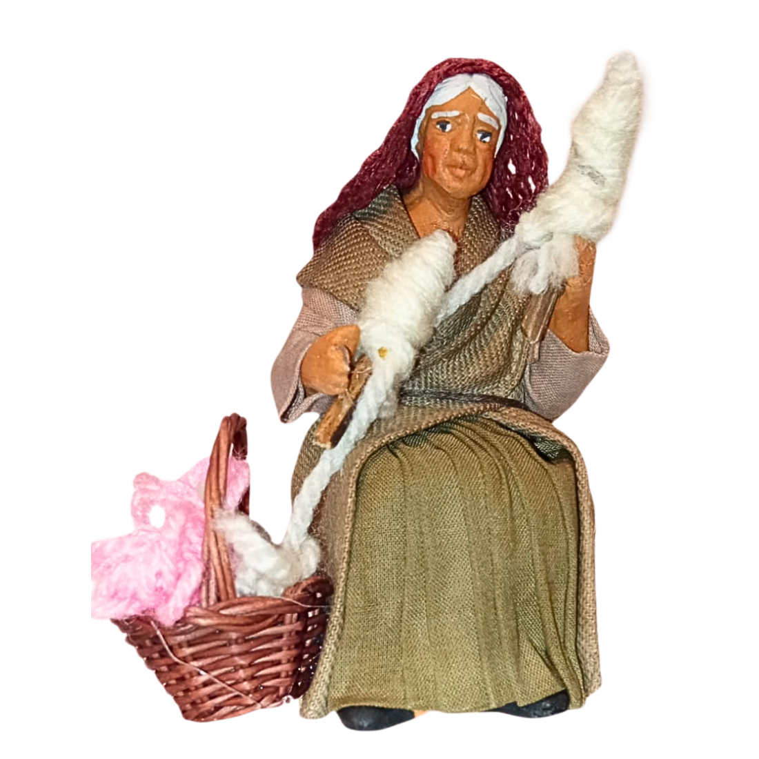 La statuina è in stoffa modellata, con ogni particolare curato a mano nei minimi dettagli. Le espressioni del volto sono realistiche.