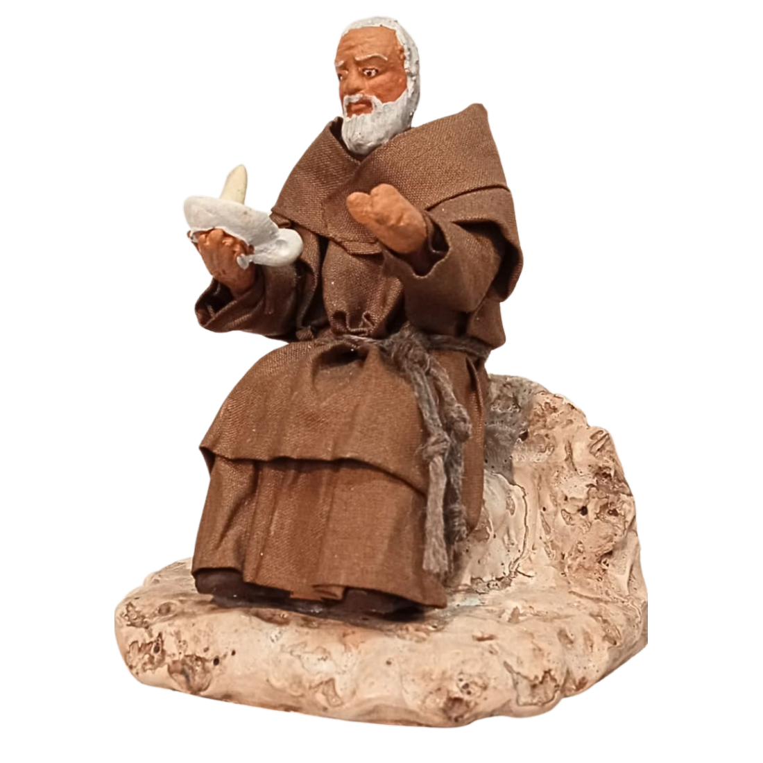 La statuina è in stoffa modellata, con ogni particolare curato a mano nei minimi dettagli. Le espressioni del volto sono realistiche.
