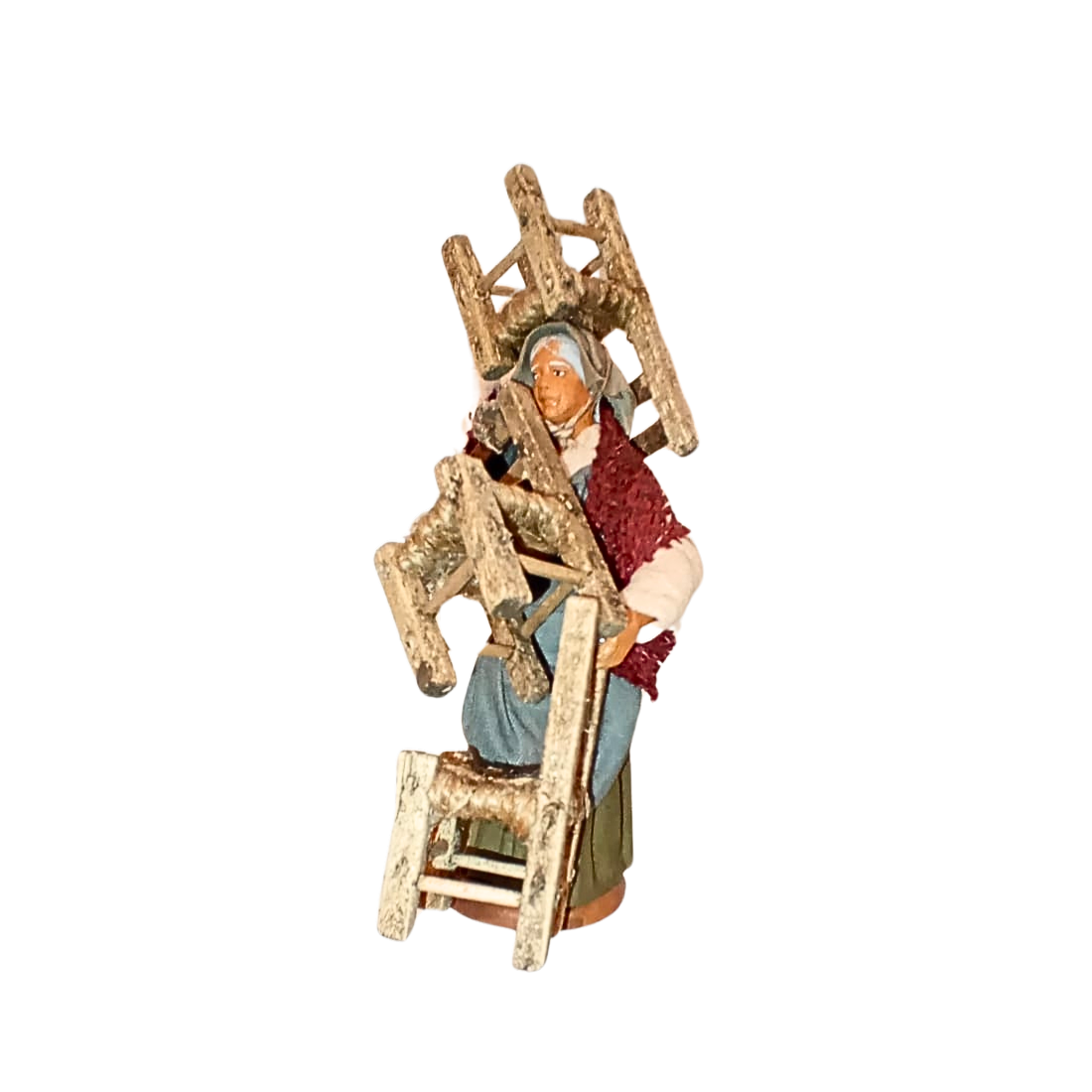 Donna con sedie addosso cm 10 terracotta e tessuto