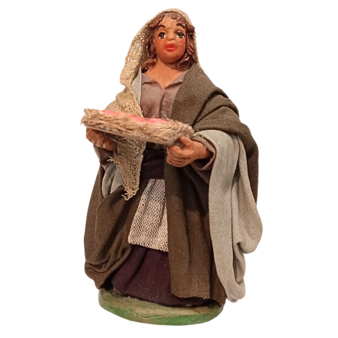 La statuina è in stoffa modellata, con ogni particolare curato a mano nei minimi dettagli. Le espressioni del volto sono realistiche.