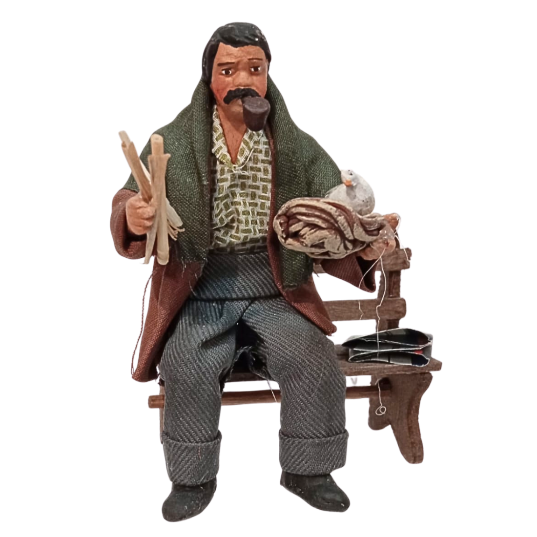 La statuina è in stoffa modellata, con ogni particolare curato a mano nei minimi dettagli. Le espressioni del volto sono realistiche.