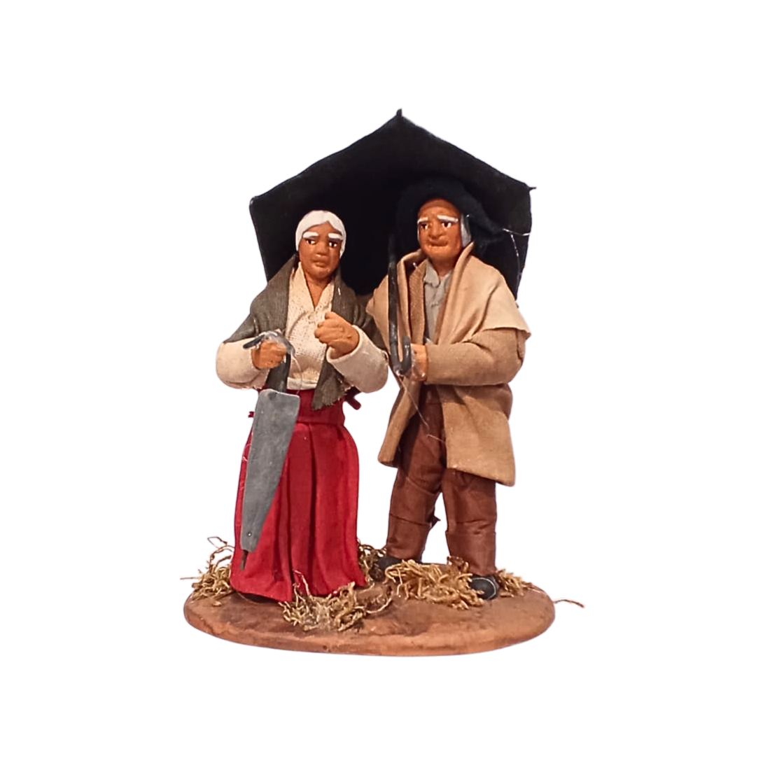 Personaggi in terracotta siciliana vestiti in tessuto da artigiani napoletani.