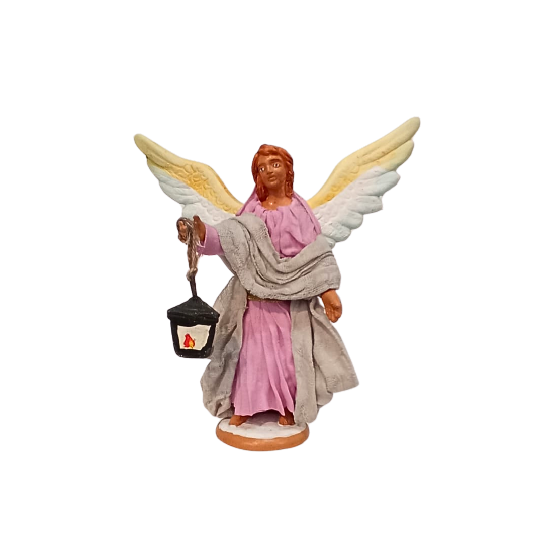 Angelo in piedi con lanterna cm 10 terracotta e tessuto