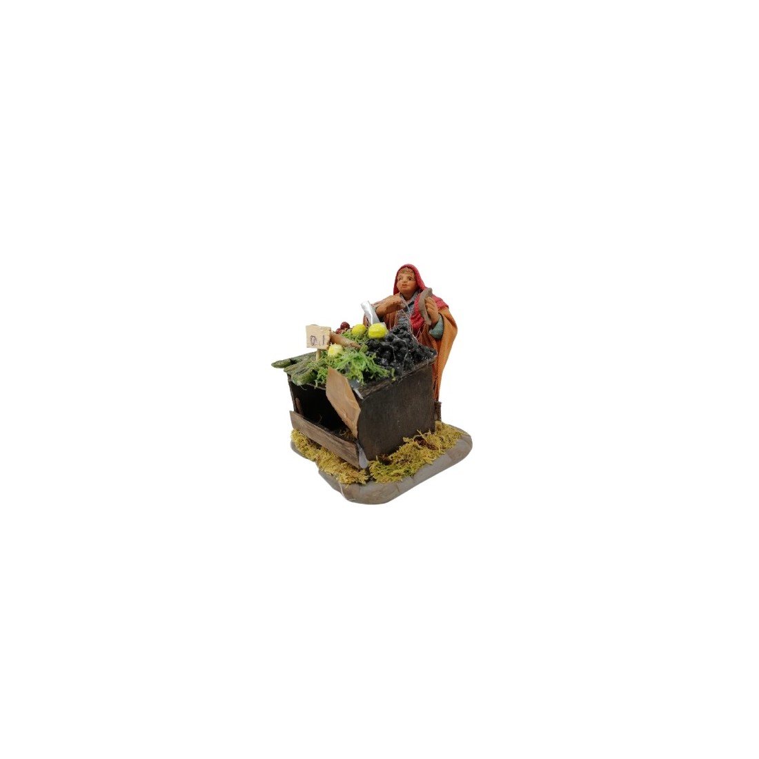 Venditore di pesce con banco cm 10 terracotta e tessuto