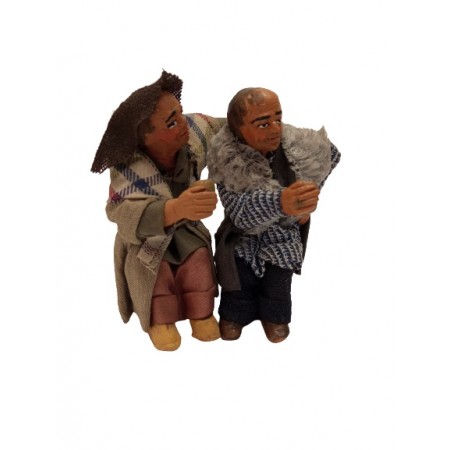 Coppia di bevitori cm 10 in terracotta e tessuto