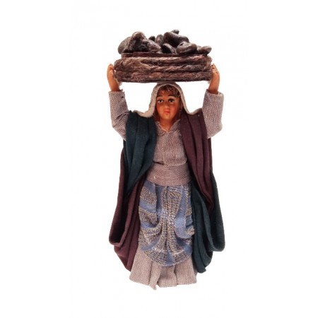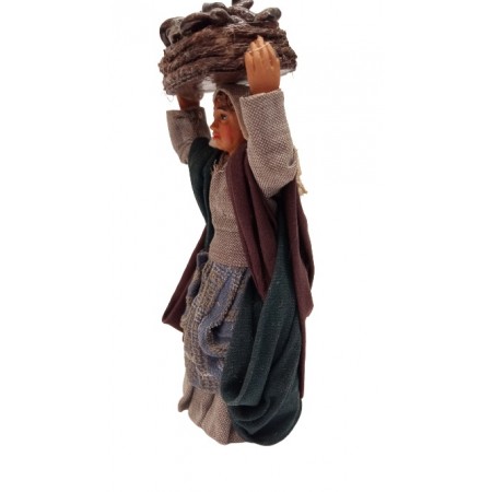 Donna con vassoio di funghi cm 10 in terracotta e tessuto