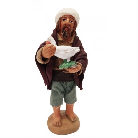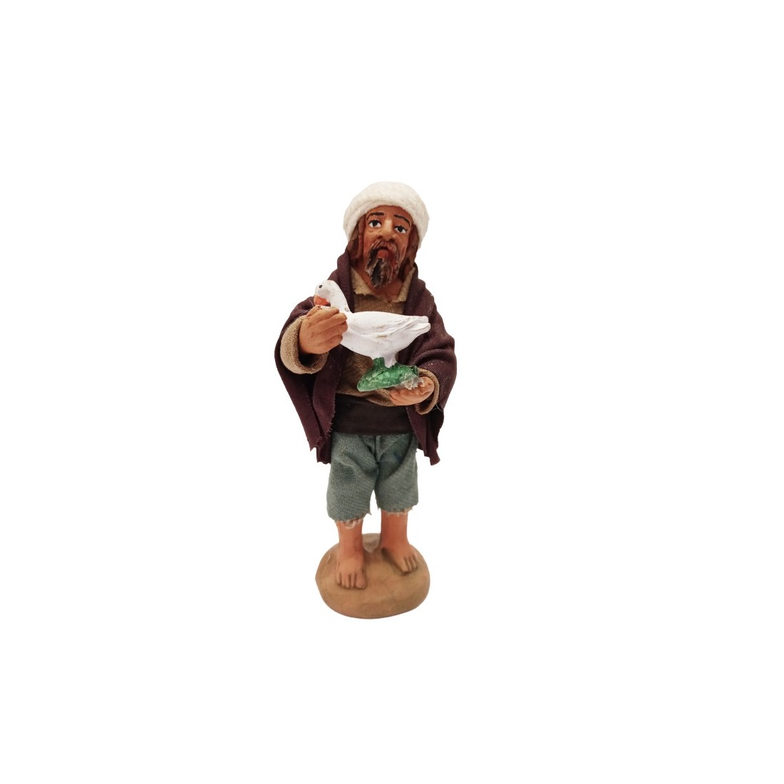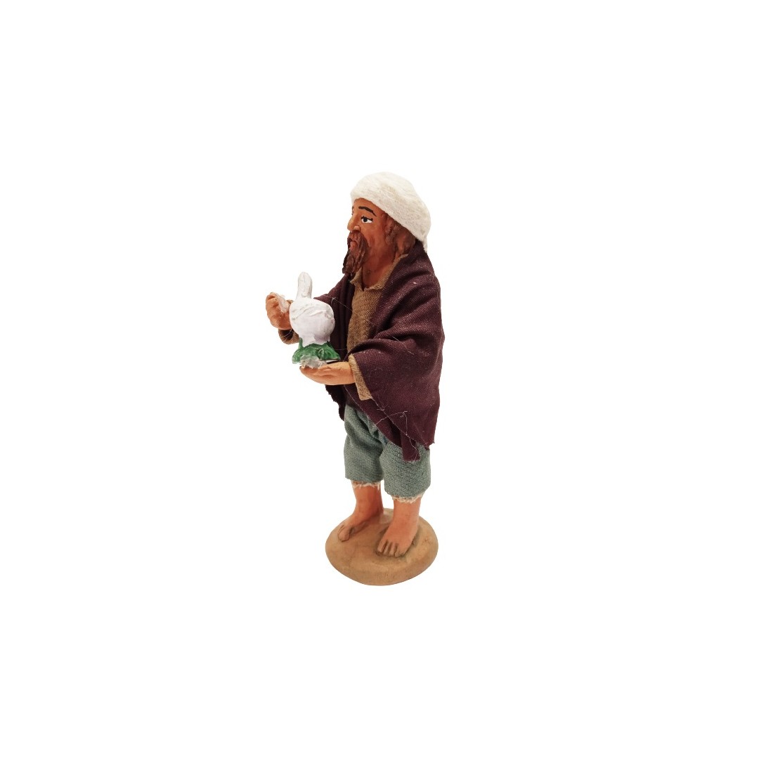 Uomo con oca in mano cm 10 in terracotta e tessuto