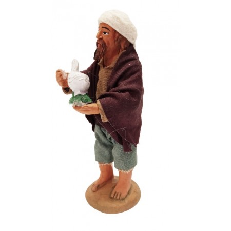 Uomo con oca in mano cm 10 terracotta e tessuto