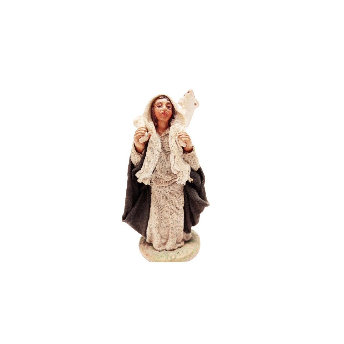Donna con agnello cm 10 terracotta e tessuto