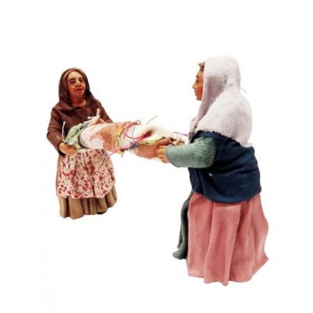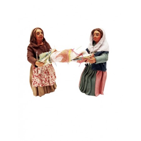 Donne che strizzano i panni cm 10 in terracotta e tessuto