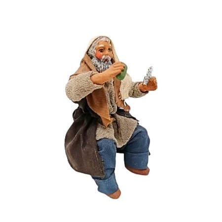 Giocatore di carte con carte e bicchiere cm 12 in terracotta e tessuto