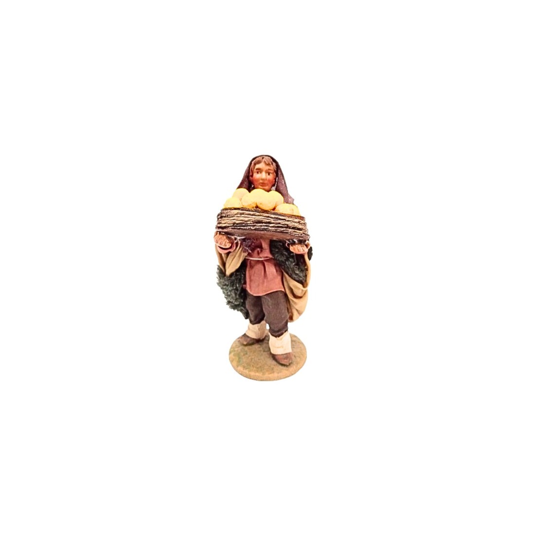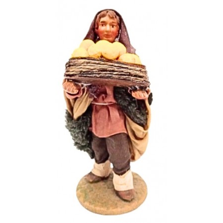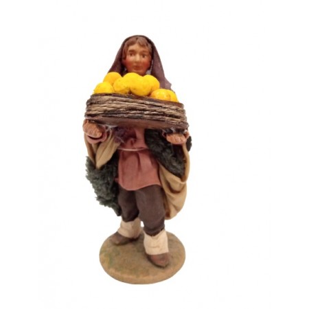 Uomo con vassoio di arance cm 12 terracotta e tessuto