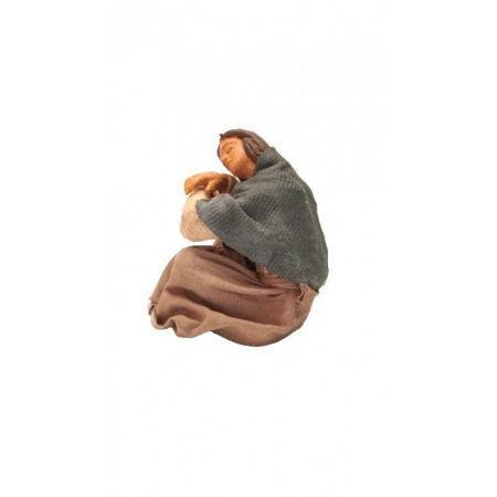 Donna seduta che dorme cm 12 terracotta e tessuto
