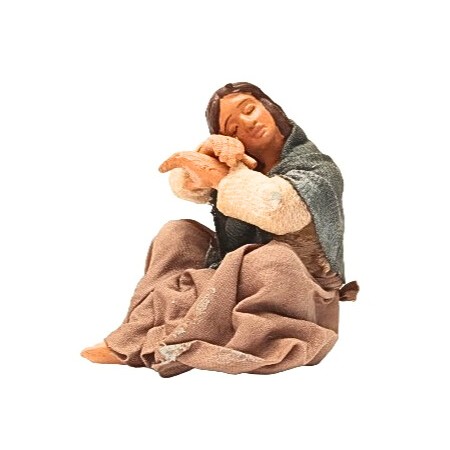 Donna seduta che dorme cm 12 in terracotta e tessuto