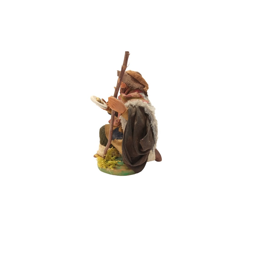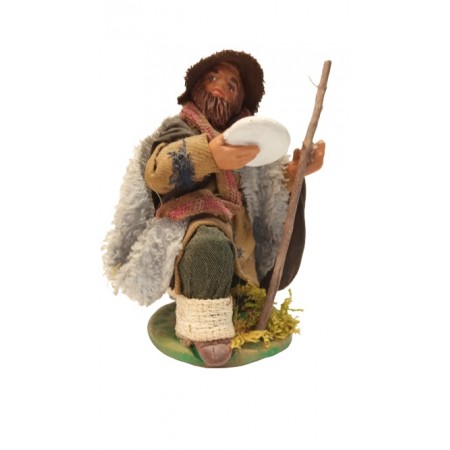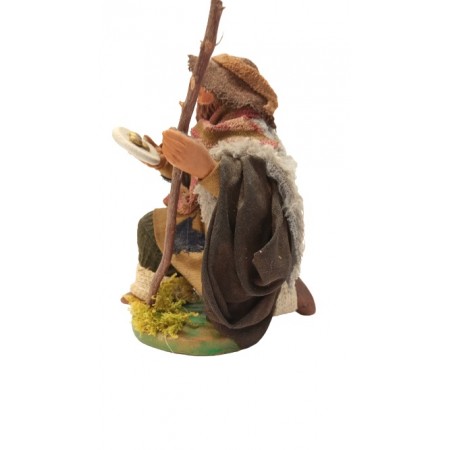 Pastore in ginocchio cm 12 in terracotta e tessuto
