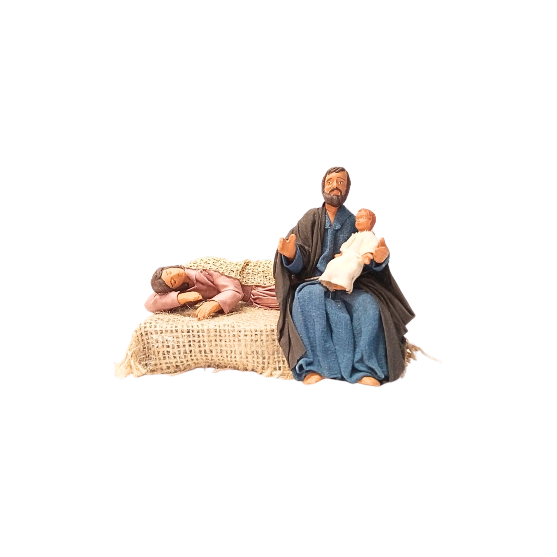 San Giuseppe che fa riposare Maria cm 12 terracotta e tessuto