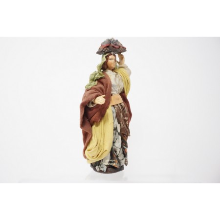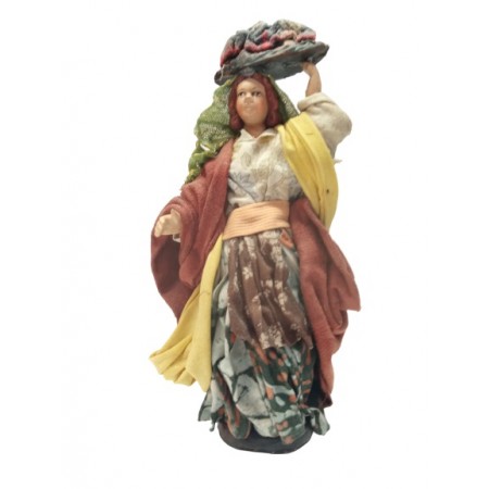 Donna con panni in testa cm 14 terracotta e tessuto