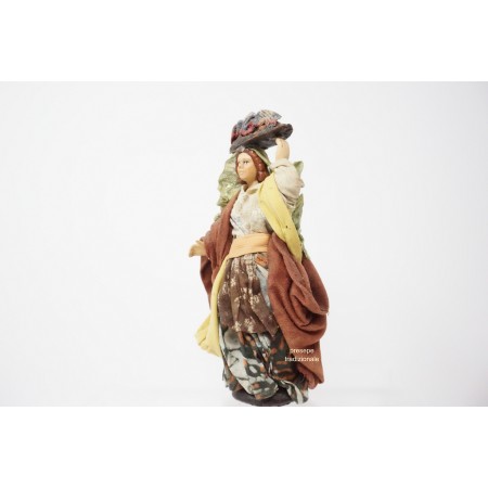 Donna con panni in testa cm 14 in terracotta e tessuto