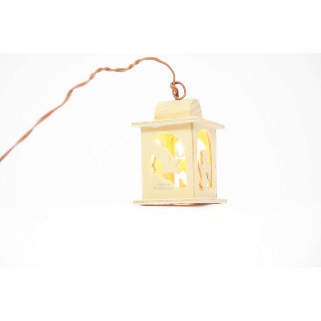 Lanterna in legno con decori 2x2 h3 cm luce bianca 3,5V
